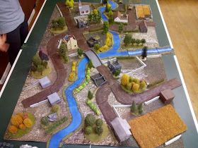 Sam had got there early enough to set up a gorgeous table and come up with the scenario: cleverly, there was no set-up (all units had to advance on), but - having won the toss - the Allies got to choose their table edge, and this made them defenders too, meaning that contested objectives would go in their favour.